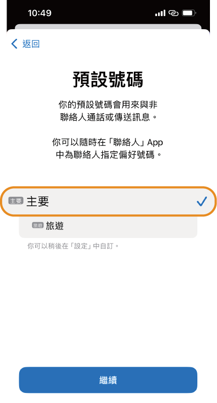 預設號碼、iMessage 與 FaceTime選擇「主要」
